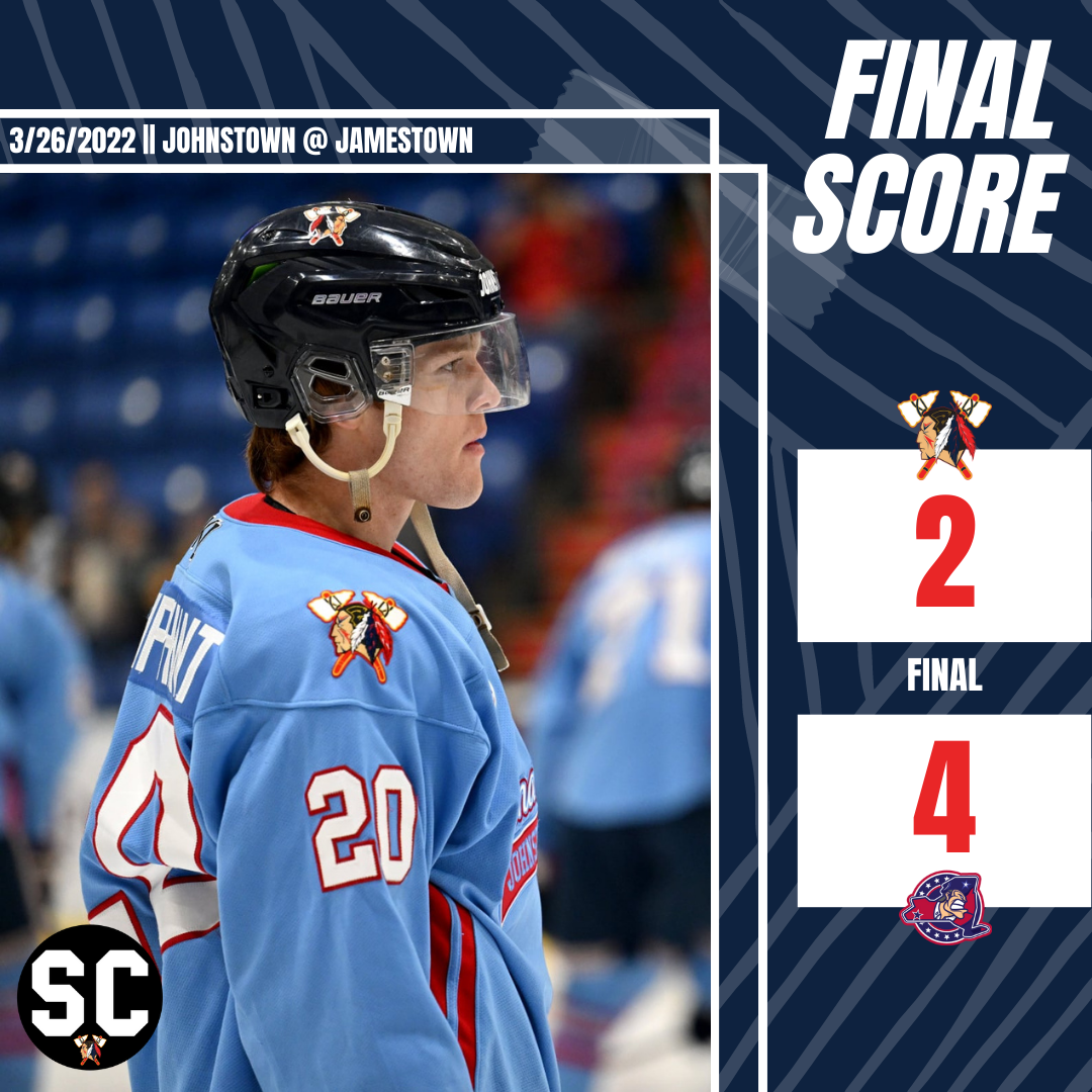 The Johnstown Tomahawks fell 4-2 Saturday night on the road to the Jamestown Rebels as Jamestown gets the weekend sweep over Johnstown.