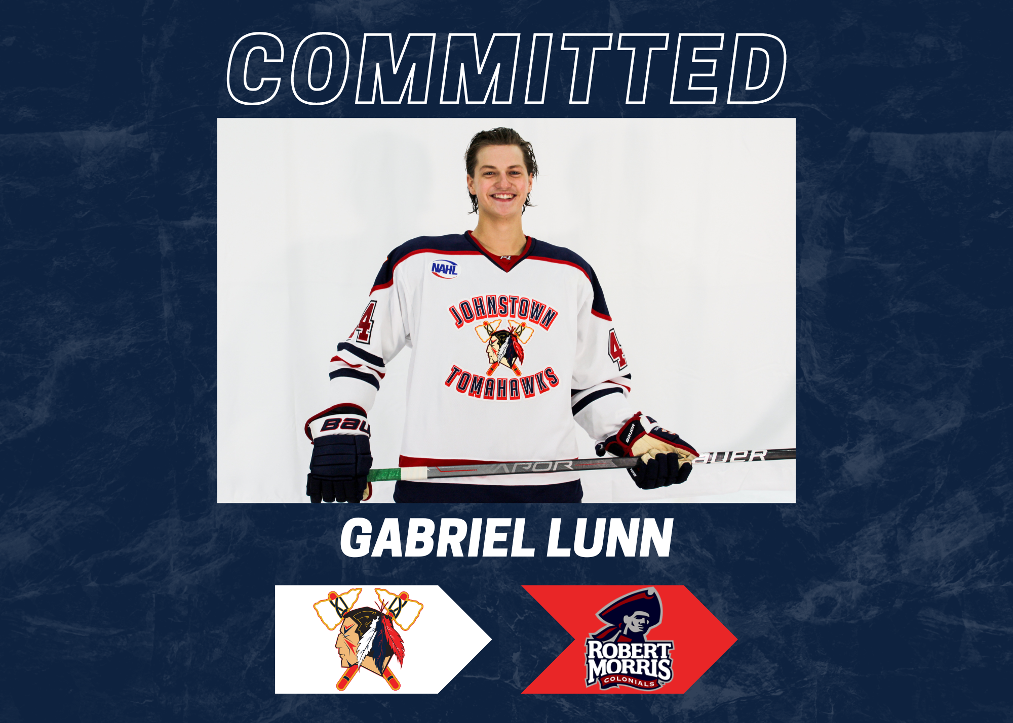This past weekend, Johnstown Tomahawks defenseman Gabriel Lunn announced his commitment to play Division I hockey at Robert Morris University in Pittsburgh. The Colonials men’s and women’s program will resume play in the 2023-24 season, following their two-year hiatus.