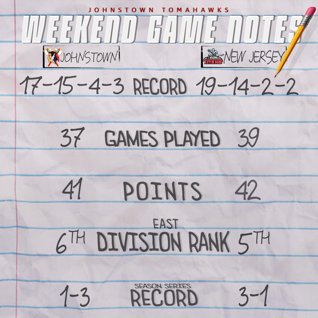 The Johnstown Tomahawks will be facing off against another East Division rival in the New Jersey Titans this weekend at 1st Summit Arena to wrap up January. Following this weekend, the Hawks will play three of the next four weeks on the road, so it will be interesting to see if they can take advantage of the home ice and gain some more ground in the East Division, potentially even pass the Titans.