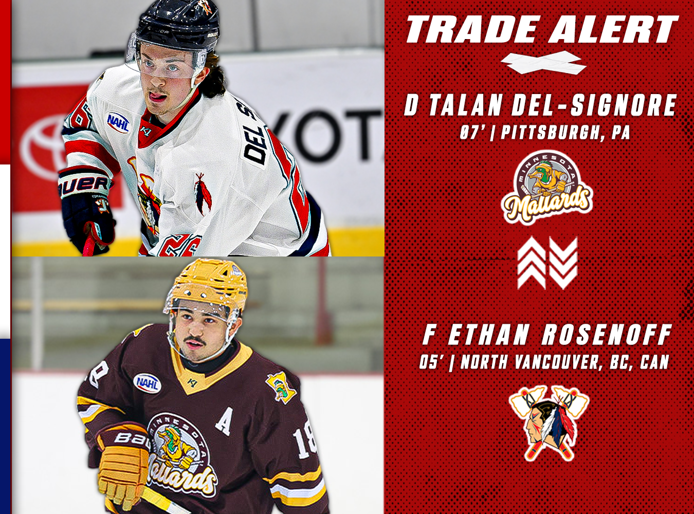 JOHNSTOWN – The Johnstown Tomahawks have announced the acquisition of forward Ethan Rosenoff from the Minnesota Mallards (Central) in exchange for defenseman Talan Del-Signore.