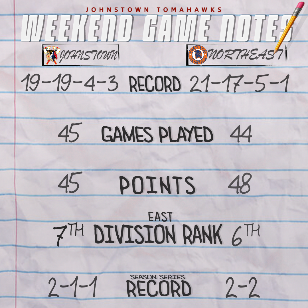 The most crucial two-game set of the season is upon us this weekend in Massachusetts as the Tomahawks will take on the Northeast Generals. The Gens will come into action in the sixth and final playoff spot in the East and hold a three point cushion on Johnstown also with a game in hand. As we approach the home stretch of the regular season, given the situation, the Tomahawks will likely need to grab at least three points out of a possible four on the weekend. The Hawks are coming off a strong win on home ice last weekend versus Elmira and will look to finally start to string together some victories.
