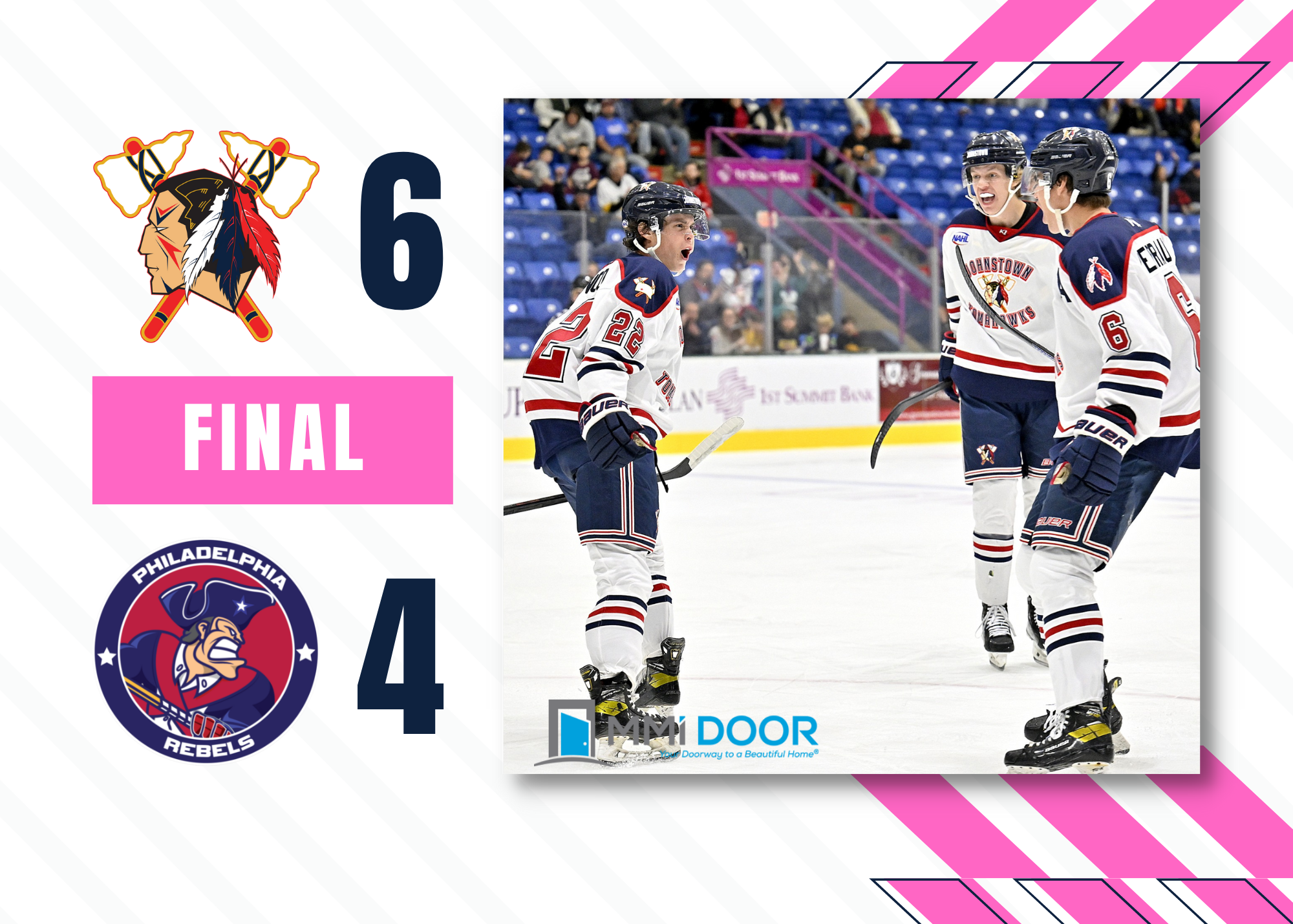 The Johnstown Tomahawks picked up the weekend sweep against the Philadelphia Rebels on Saturday night in front of their home fans on Breast Cancer Awareness Night at 1ST SUMMIT ARENA.