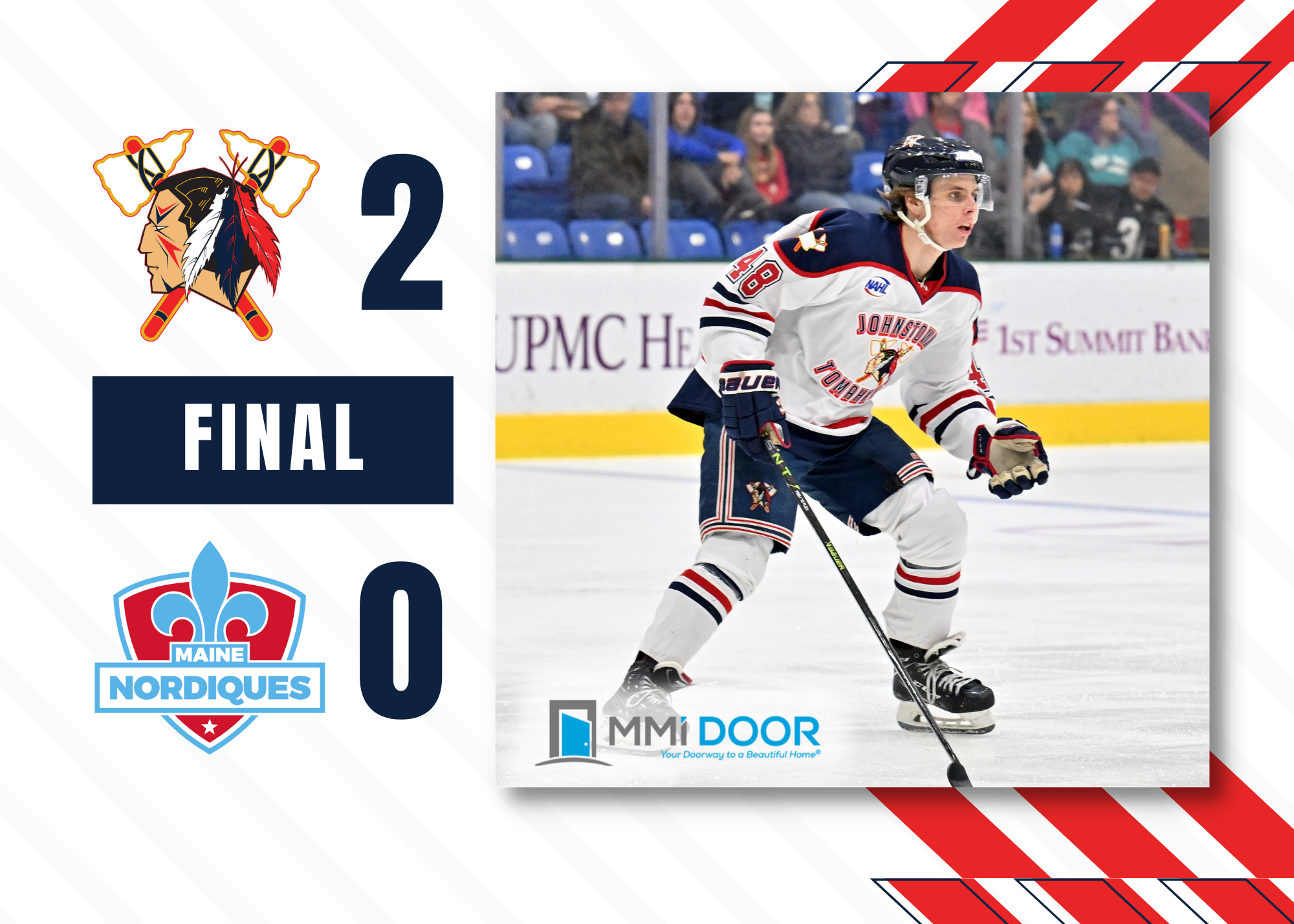 The Johnstown Tomahawks won 2-0 over the Maine Nordiques on Friday night as Alec Rajalin-Scharp earned the shoutout in net for Johnstown.