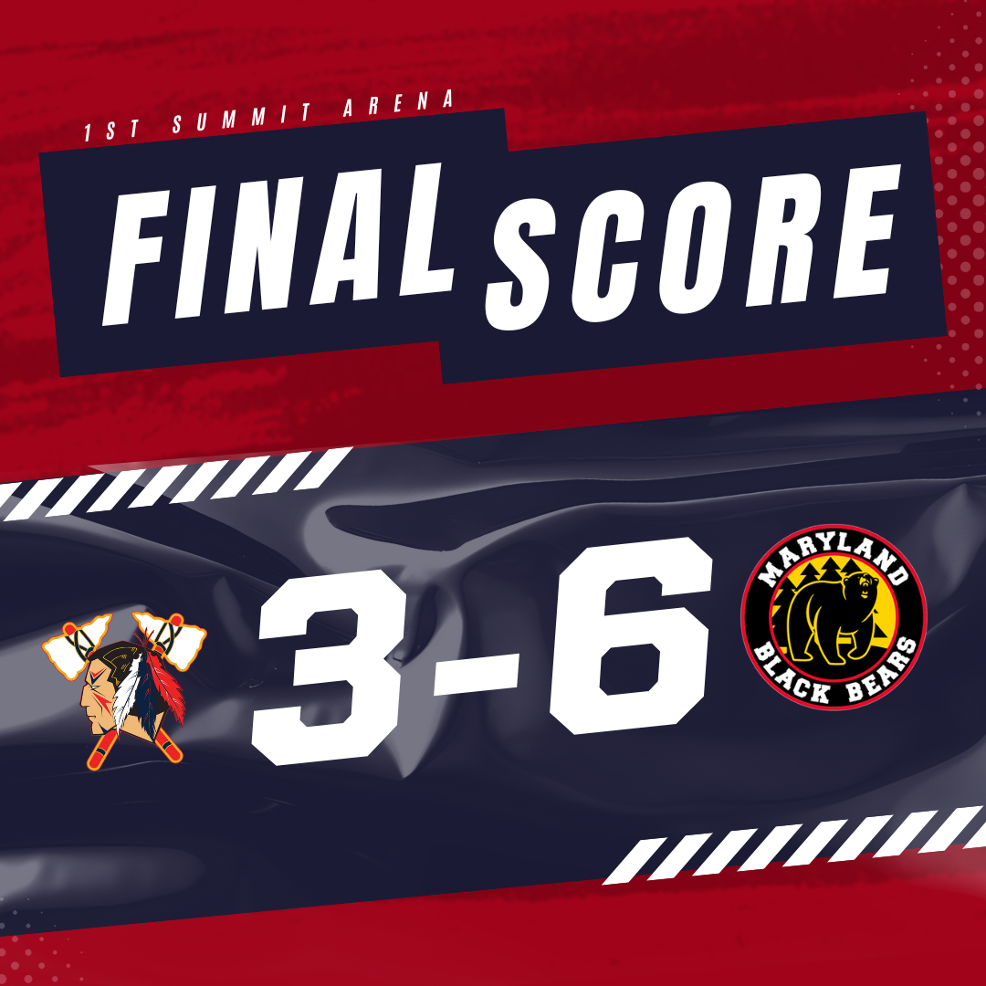 JOHNSTOWN – The Johnstown Tomahawks (7-4-2) were defeated by the Maryland Black Bears (11-1-1) by a final score of 6-3 on Saturday, October 18th to conclude the second home weekend in Johnstown of the young season. The Tomahawks were led by Emerson Marshall who tallied two goals on the evening for his 9th and 10th of the season. Nick Jarmain also notched a power play goal and Tomahawks goaltender Colten Drillen-Roach made 32 saves. Joshua Frenette recorded a hat-trick for the Black Bears and goaltender Ryan Denes was steady, making 28 saves for the victory.