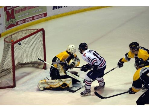 For the second time in the game, McDonald deflected a puck from Wallace past Marble at 14:37 to give the Tomahawks a 4-1 lead.