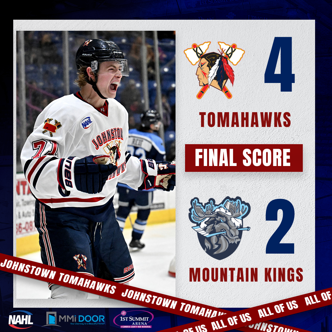 The Johnstown Tomahawks defeated the New Hampshire Mountain Kings by a final score of, 4-2 on Friday night.