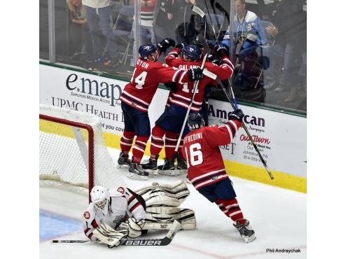 Merulla extended the lead in the second period with a power-play goal, before Andrew Bellant and Dean Balsamo made it 5-0 after two periods. Third period goals by Ryan Cusin and Austin Swingle set the final score, earning the weekend split. Trevor Micucci stopped all 27 shots he faced in the victory.